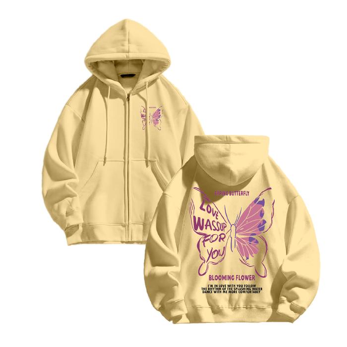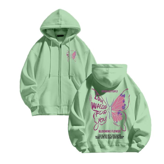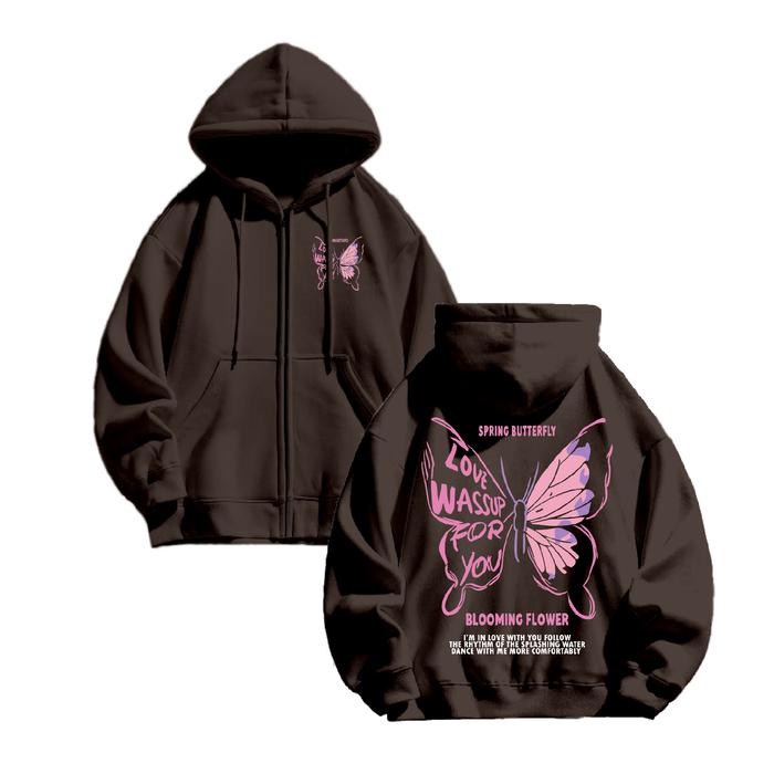 WGUD'S JACKET HOODIE ZIPPER SPRING BUTTERFLY UNISEX PRIA - WANITA SIZE M-XXL - HITAM, M