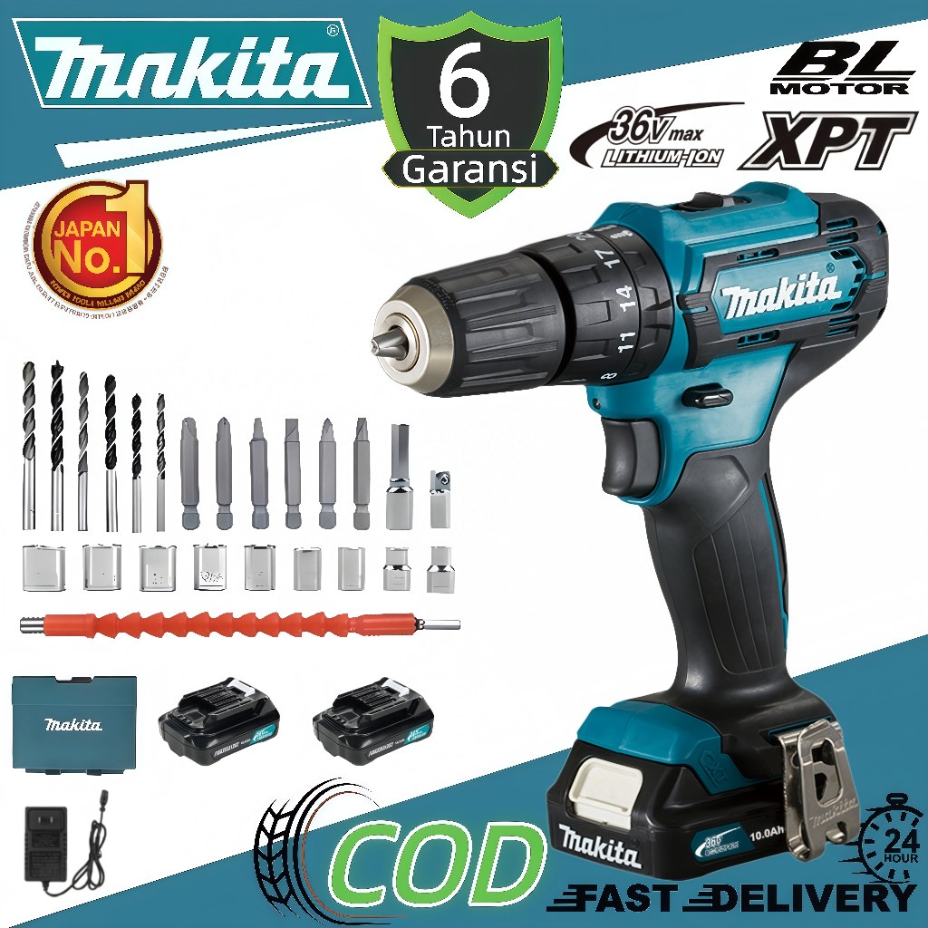 Makita6 tahun garansi}DF333D 36V Bor benturan tanpa kabel Bor dampak beton Obeng listrik fungsional Bor meninju aluminium