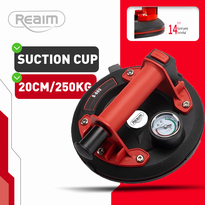 Reaim Profesional 8 inch Tile Suction 250KG Angkat Granit Besar Dengan Pengukur Tekanan Tile Suction
