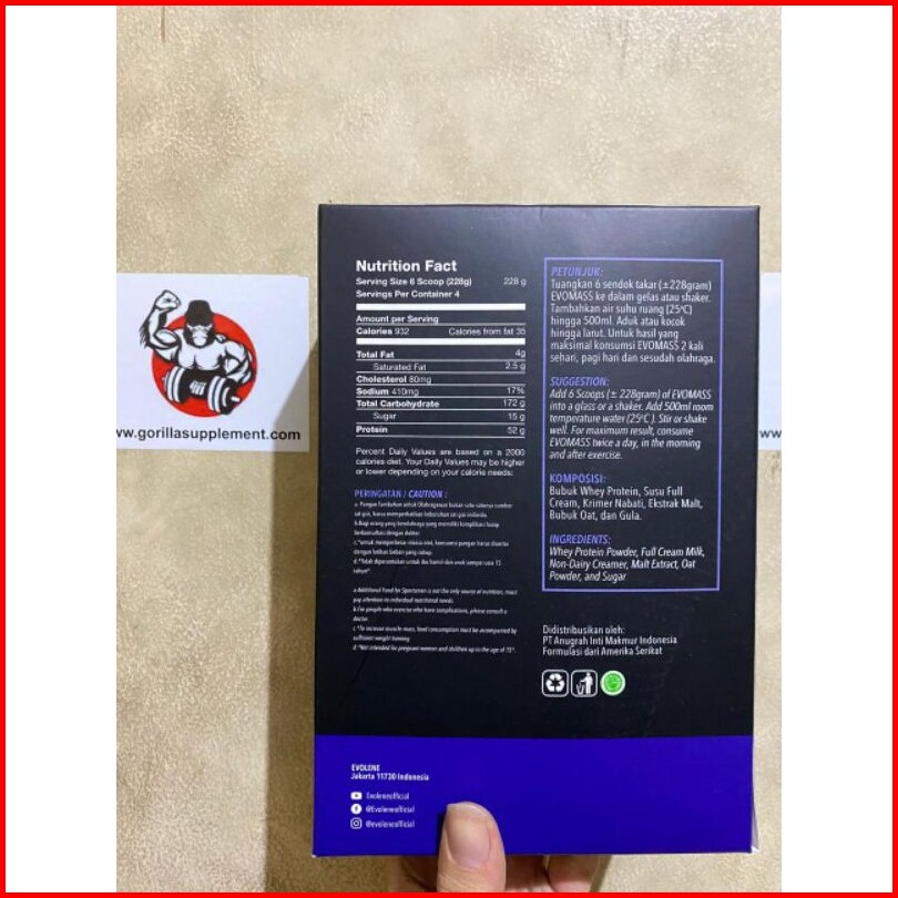 Evolene Evomass Evo Mass 2lbs 923 Gram Bpom Halal Mui Gainer 2lb 1kg Coklat Hazelnut
