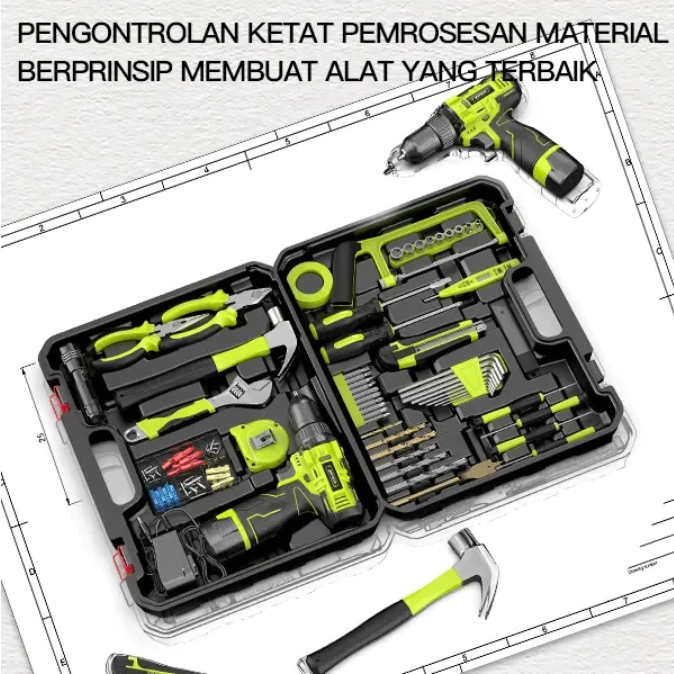 ZPER 108PCS Tool Box Besar Mesin Bor Baterai Toolkit Set Alat Tukang Bangunan Lengkap Kotak Perkakas