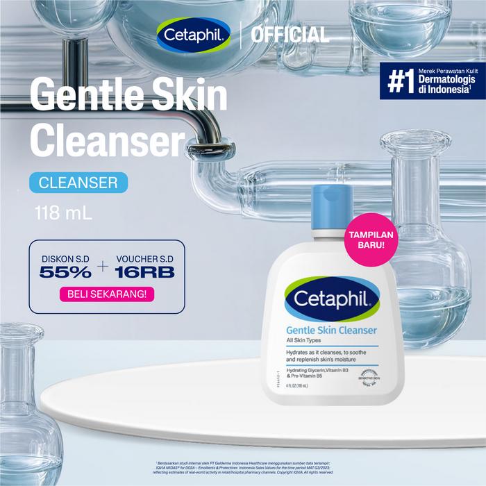 CETAPHIL GENTLE SKIN CLEANSER 118ML DENGAN NIACINAMIDE, GLYCERIN DAN PANTHENOL SABUN PEMBERSIH MUKA UNTUK SEGALA JENIS K