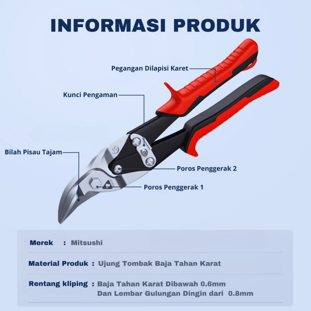 Mitsushi Gunting Baja Ringan Serbaguna 10 Inch Panjang 250mm/Gunting Holo Gunting Baja Ringan T4JAM 10 Inch Alat perangkat keras