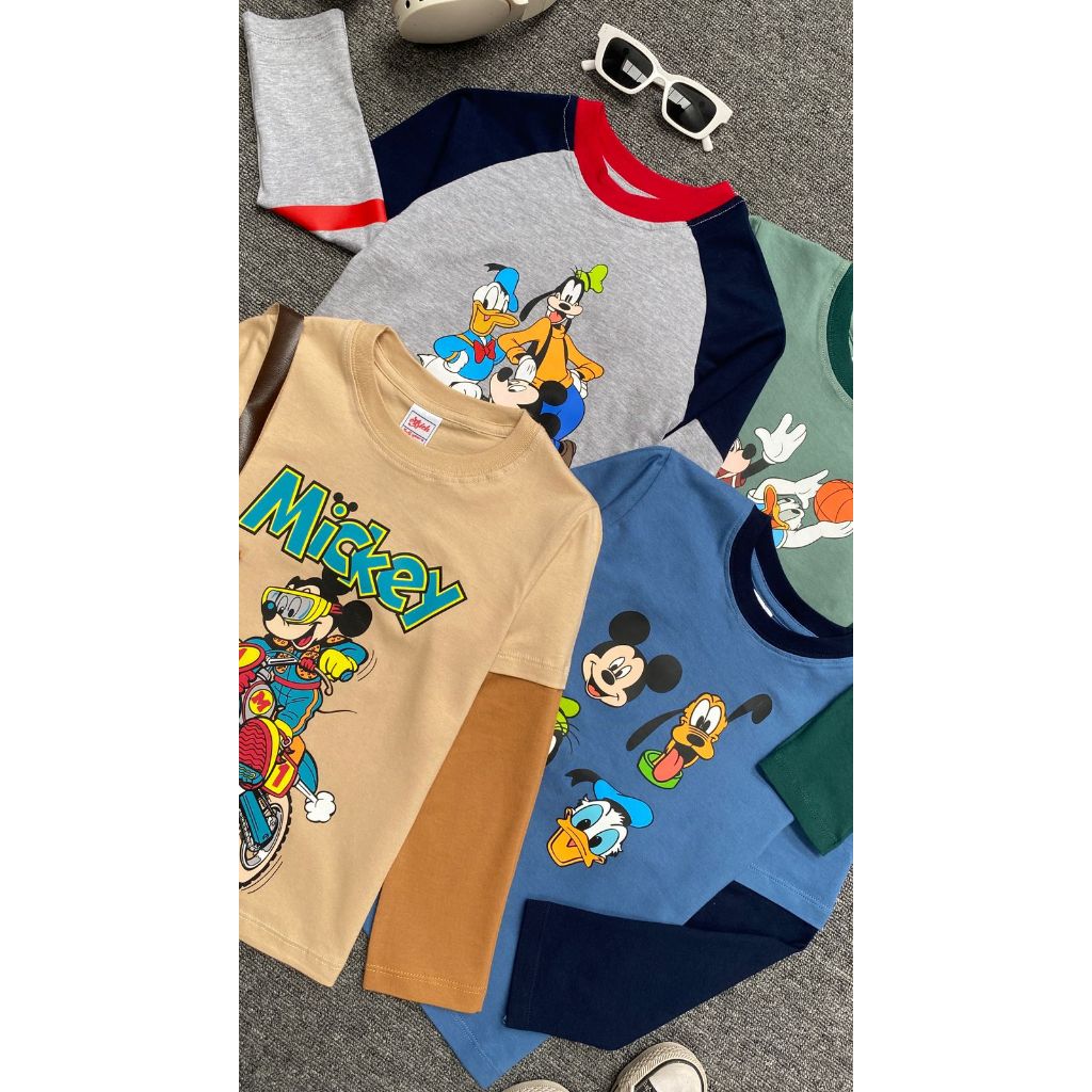 Anakmamibranded.Id Kaos Anak Sablon Pjg Mickey Mouse Kaos Mickey Mouse Anak Laki-Laki 2-12T Kaos Lengan Panjang Miki Kao