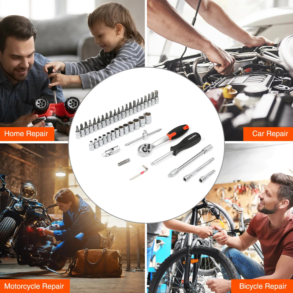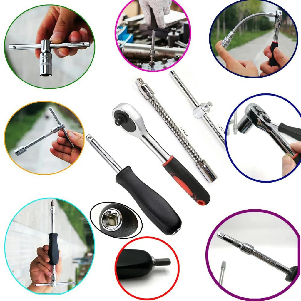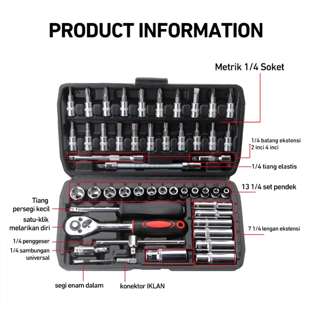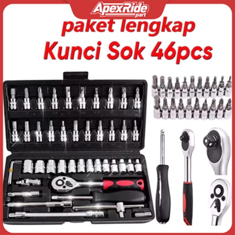 Apexride Set Alat Multifungsi 46 Buah Termasuk Alat Perbaikan Mobil, Alat Rumah Tangga, Soket 1/4 Inci, Kunci Pas dan Kunci Ratchet