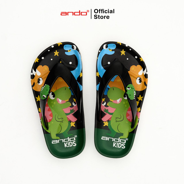 Ando Official Sandal Jepit Dinoz Anak - Hitam
