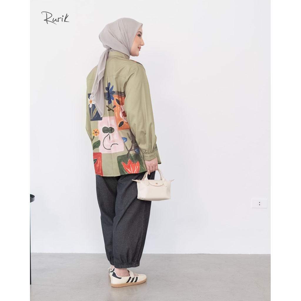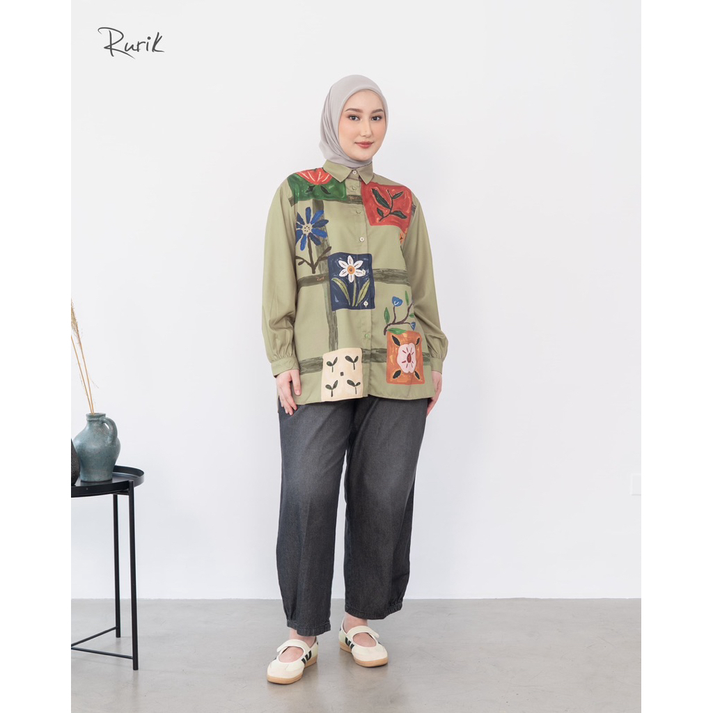 Rurik Maova Print Shirt Olive Haze Cotton Poly