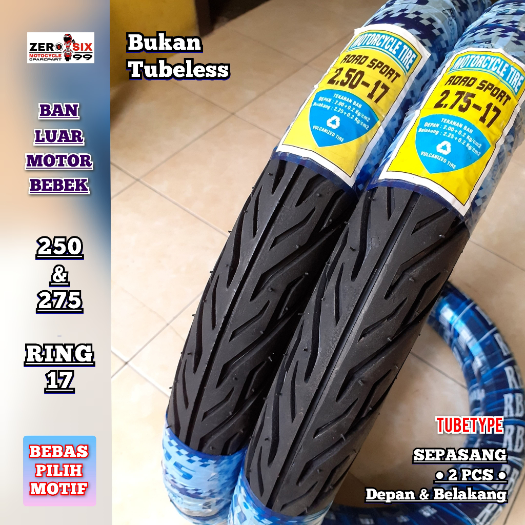 Sepasang [ 1 Set ] Ban Luar Motor Bebek Tubetype / Non Tubeles [ 250 & 275 atau 70/90 & 80/90 Ring 17 ] - Supra , Grand