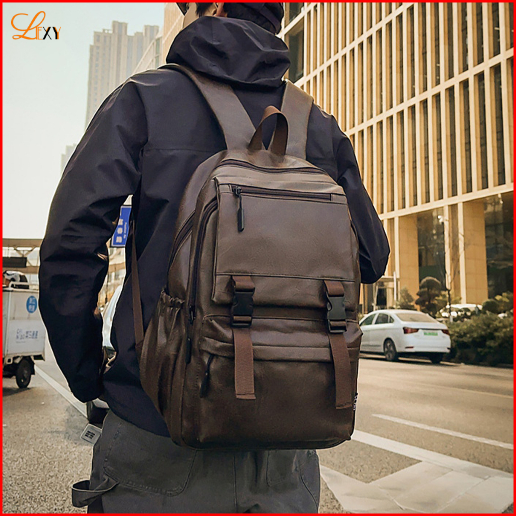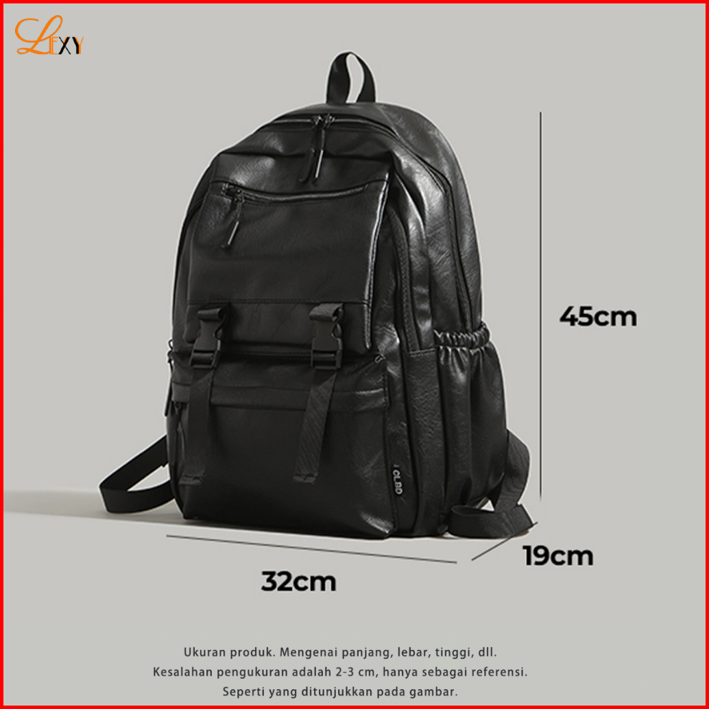 Lexy Tas Ransel Pria Pu Punggung Backpack Anti Air Tas Sekolah Korea Style Wanita 15 Inch