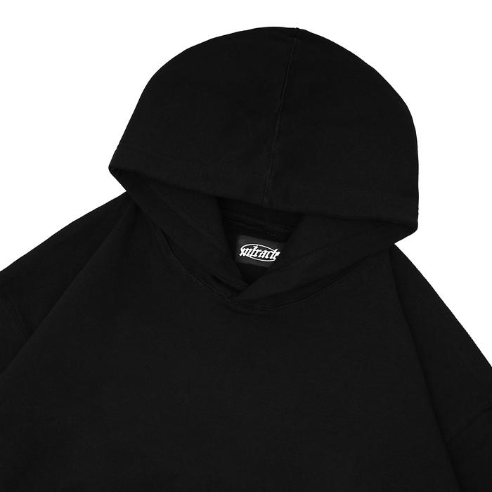 MIRACLE MATES - PLEIN BLACK BOXY HOODIE | HOODIE POLOS HITAM | COTTON FLEECE 330 GSM | BOXY FIT HOODIE - S