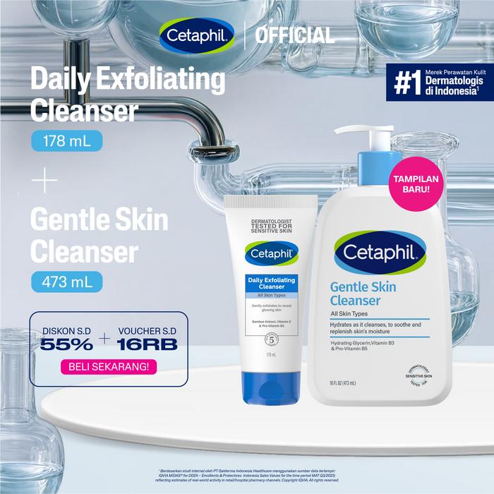 CETAPHIL DAILY EXFOLIATING CLEANSER 178ML + GENTLE SKIN CLEANSER 473ML