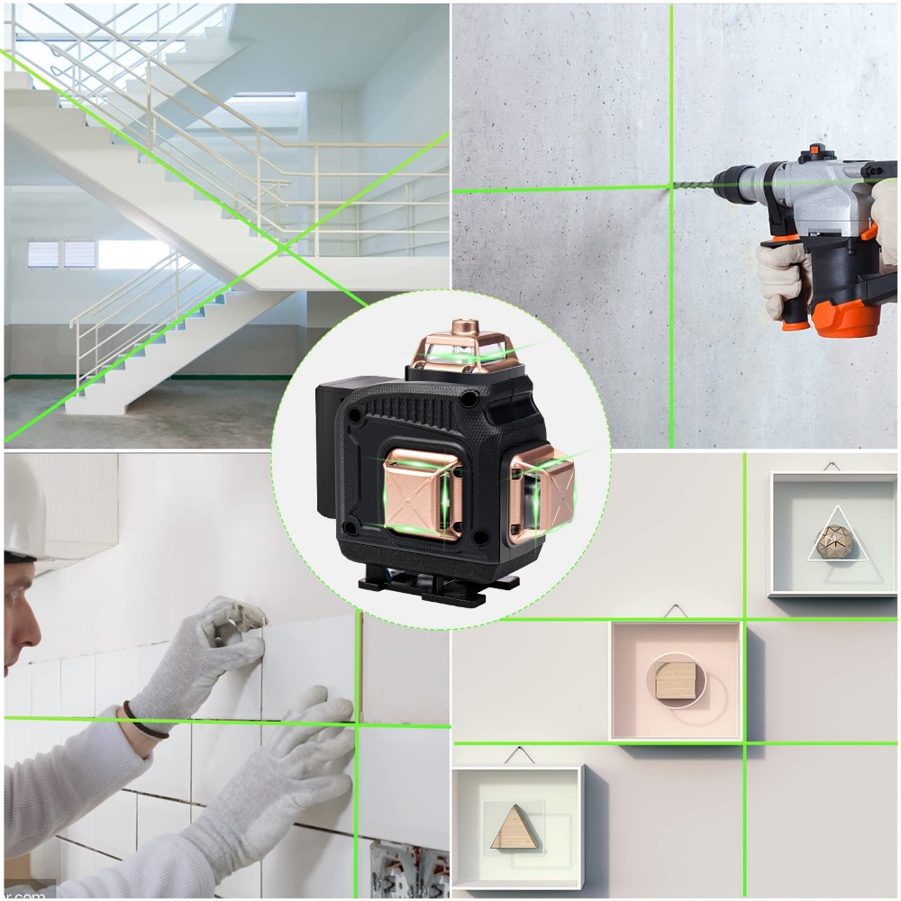 JLD Laser Level 4D 16 Lines Mesin Self Leveling Laser 360 Sinar Hijau dengan Remot Laser Fullset