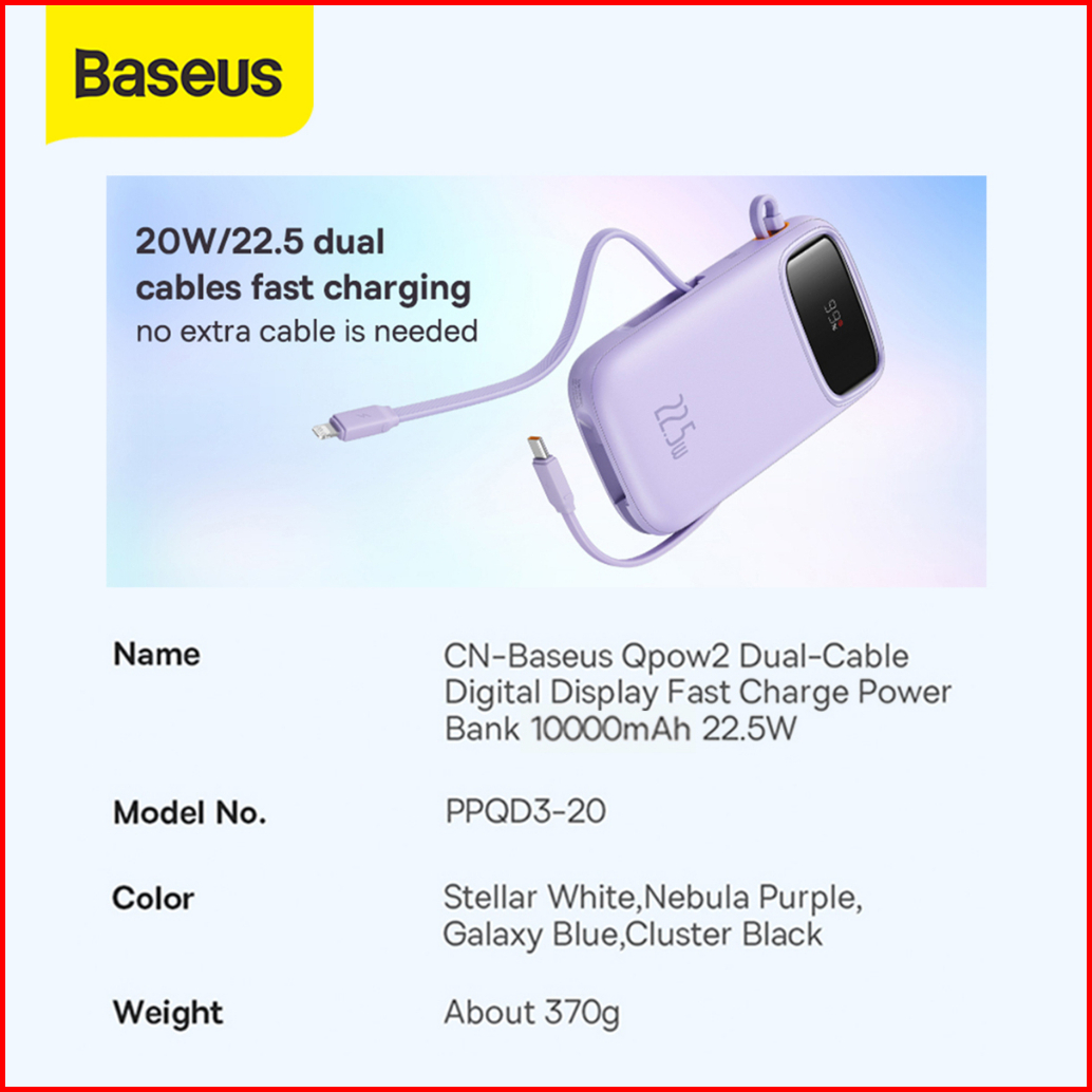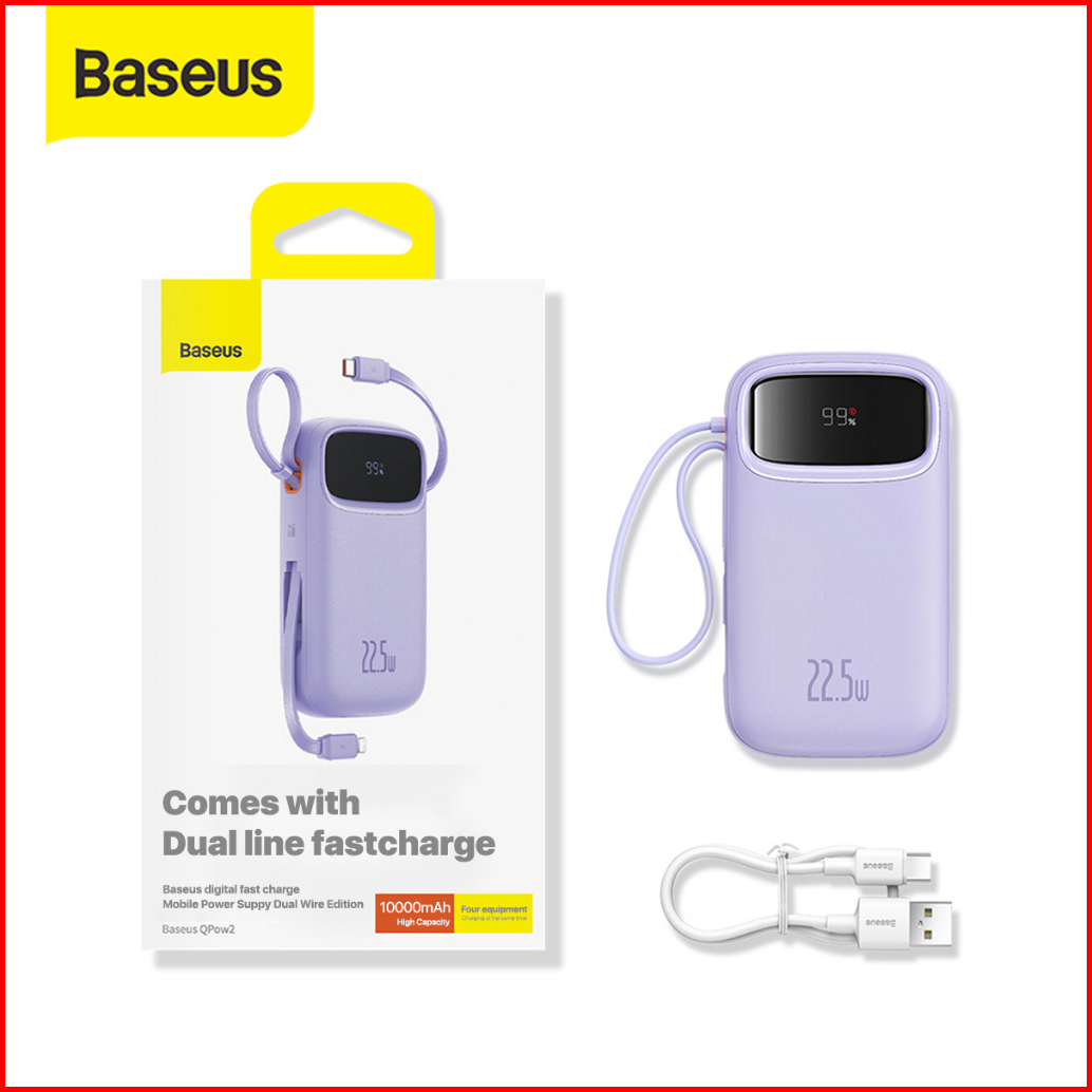 Baseus Qpow2 22.5w Fast Charging Power Bank Dual-cable Type-c Pd Qc Sfc