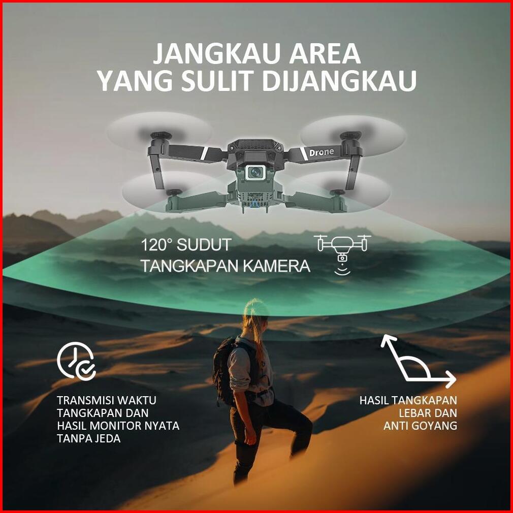 E88 Drone Kamera Jarak Jauh Fotografi Udara Profesional Murah Dual Camera Drone Premium Laki-laki Pria Ulang Tahun Kado