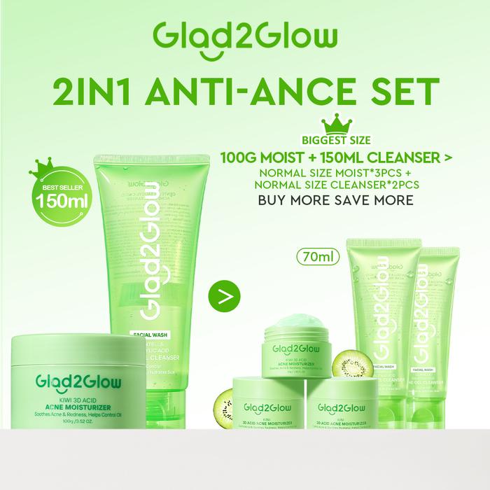 【JUMBO 150ML】GLAD2GLOW ACID ACNE CLEANSER CENTELLA GEL SALICYLIC 150ML | FACE WASH FACIAL CLEANSER SABUN CUCI MUKA GLOW