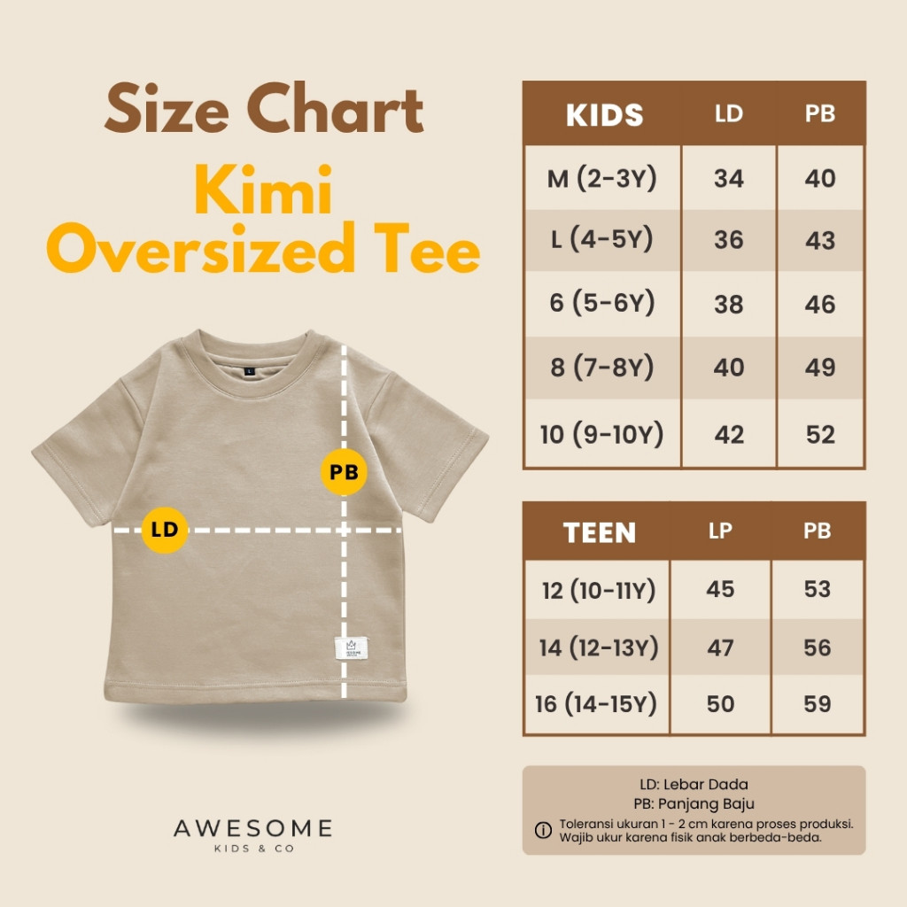Awesomekids 2-16Th Kaos Anak Polos Basic Oversize Bahan Danbowl Premium Kimi Tee