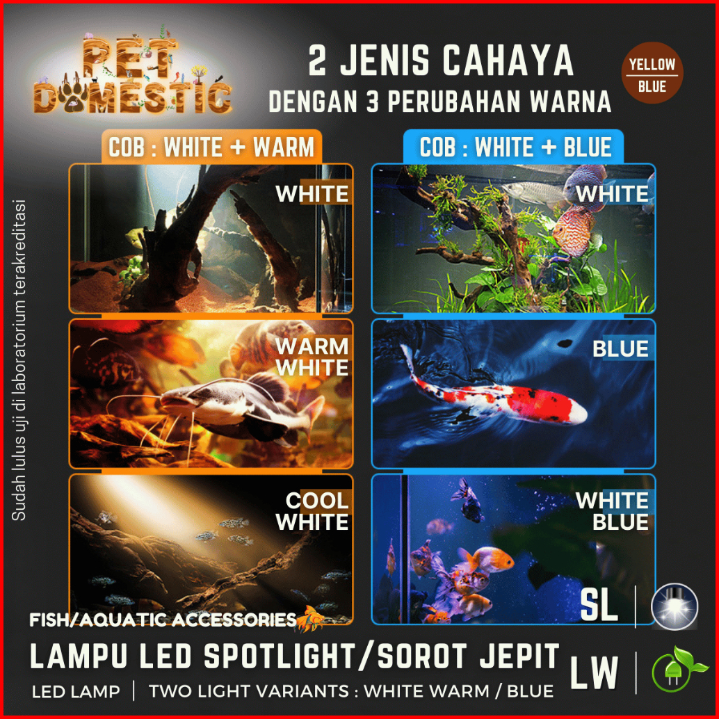 Lampu Spot Light Led Jepit Sorot Kuning Putih Biru Air Aquarium Akuarium Aquascape Lamp Tangki Ikan