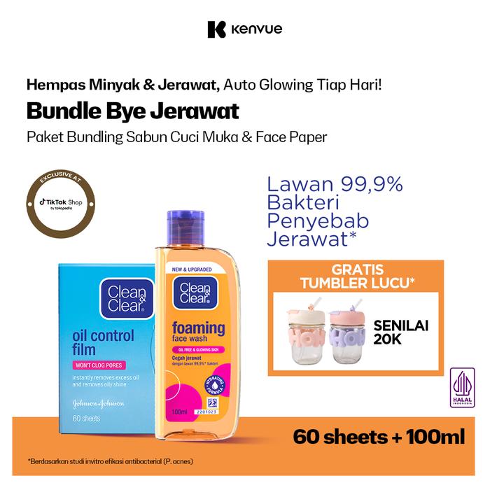 [BUNDLE BYE JERAWAT FREE TUMBLER] CLEAN & CLEAR FOAMING FACE WASH 100ML & OIL CONTROL FILM 60S - SABUN CUCI MUKA - PERAW