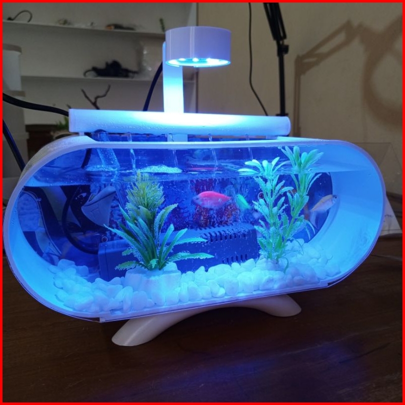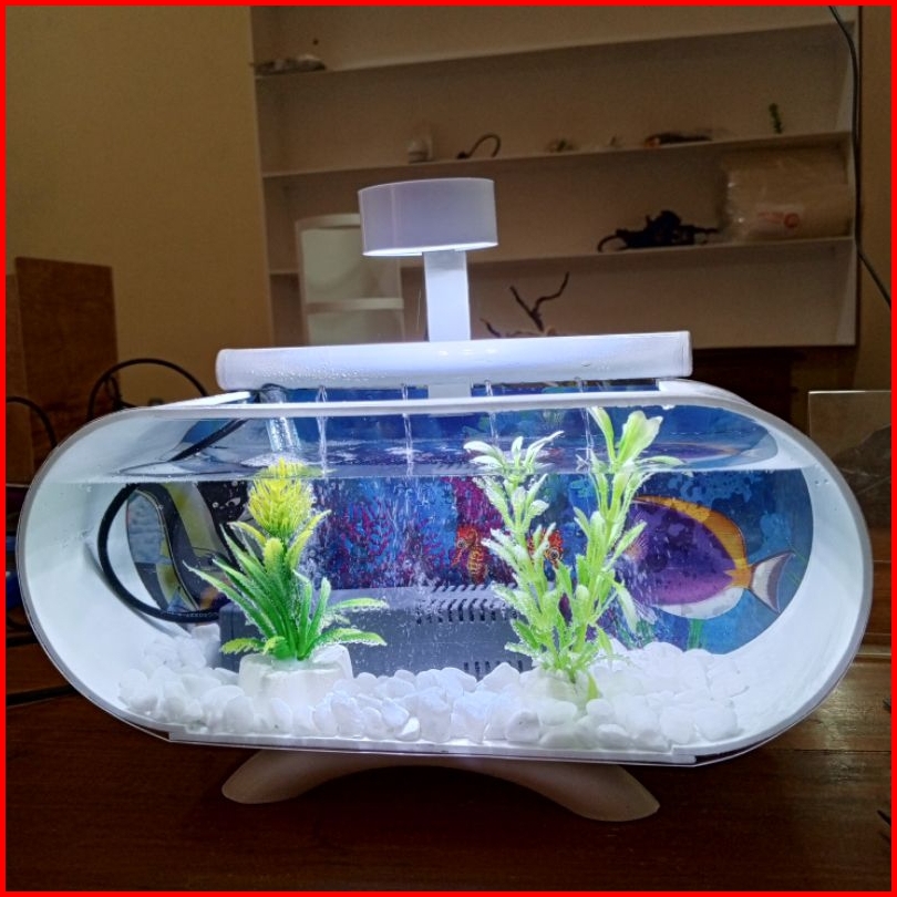 Aquarium Mini Akrilik Minimalis Full Set Besar Jumbo Pompa Filter Dan Lampu Led