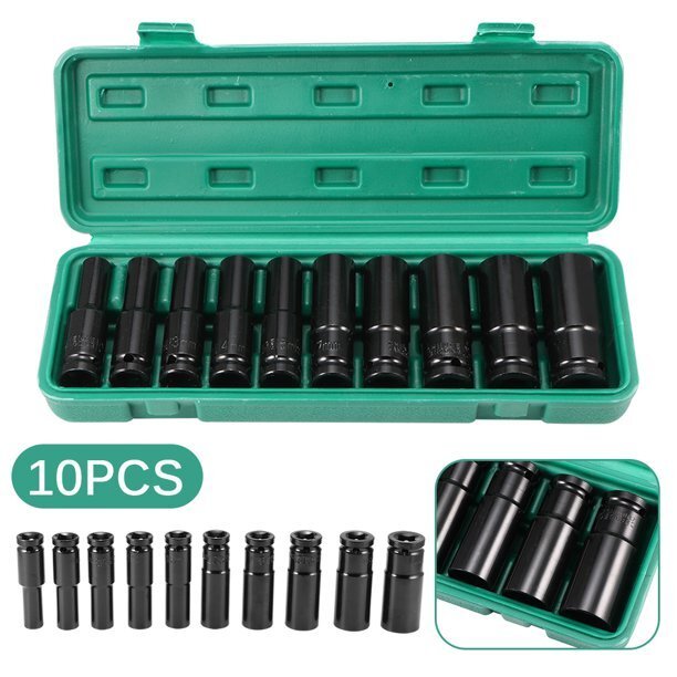 Kunci Sok Lengkap Impact 10 pcs 1/2 Inch - Impact Socket 8mm - 24mm Driver Socket Sleeve Impact Wrench Shock Mata Socket Extention Impact Socket