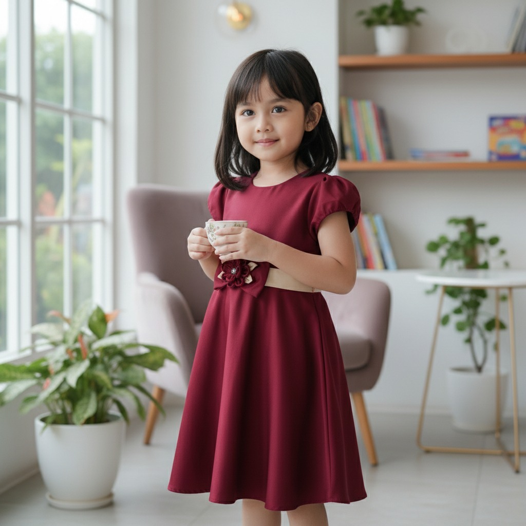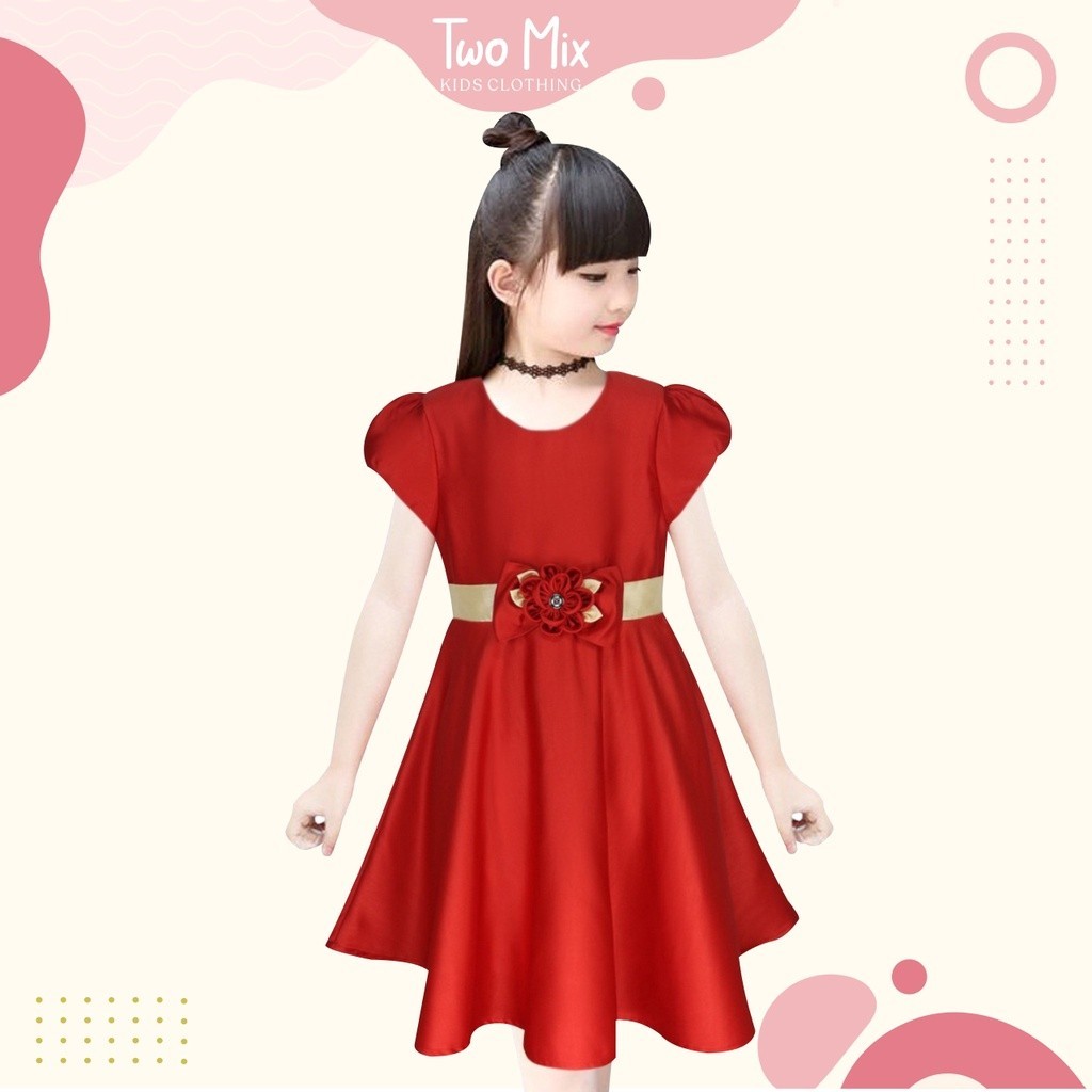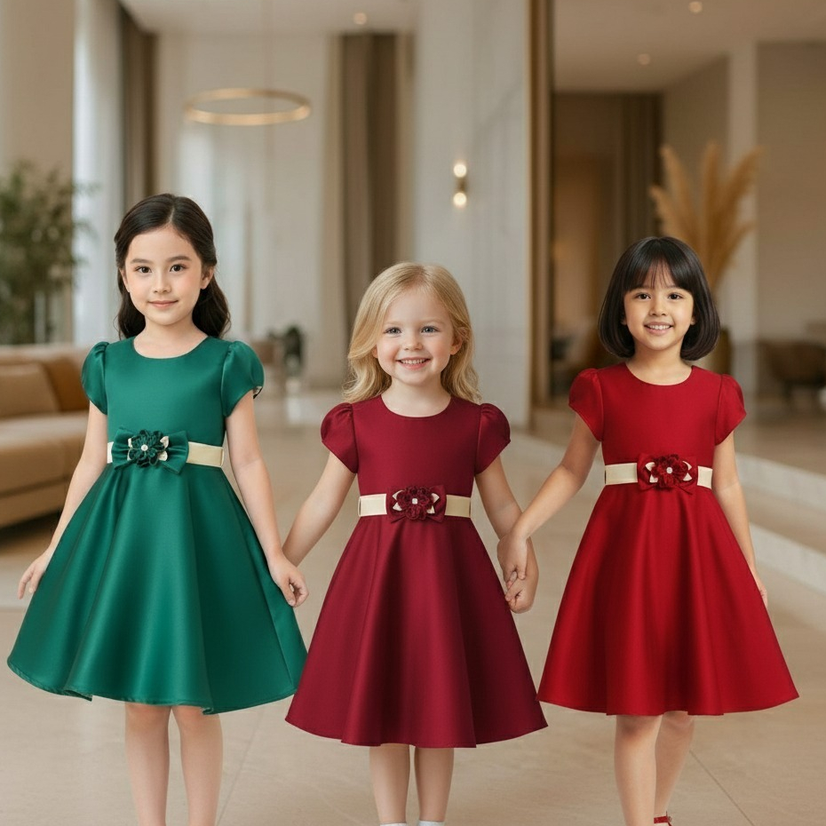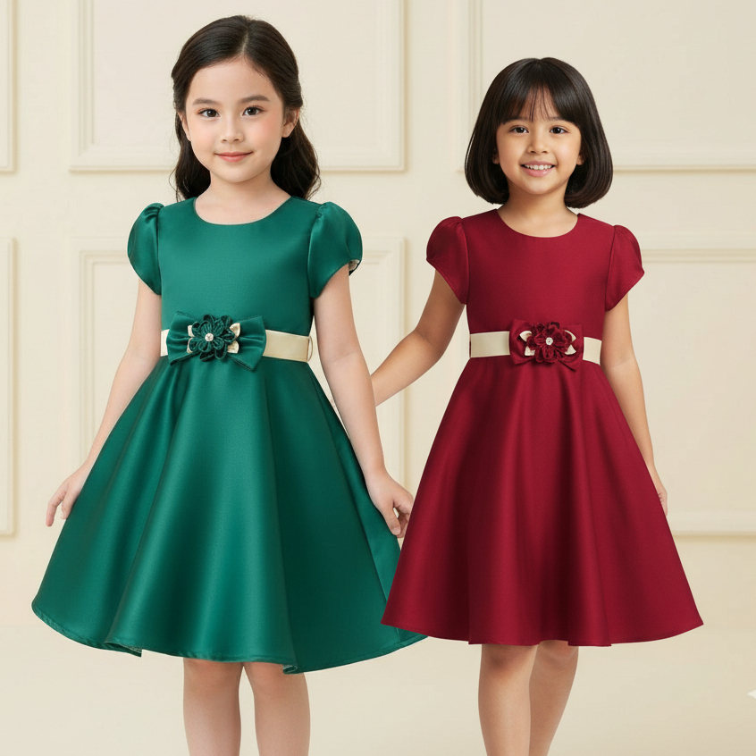 Baju Dress Anak Perempuan Pesta Satin - Gaun Girls Natal Usia 1-12 Tahun 4242