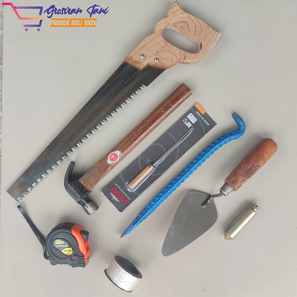 Paket ISI 8 PCS Alat Bertukang Gergaji , Palu , Kikir , Meteran , Linggis , Cetok, Benang Dan Lot