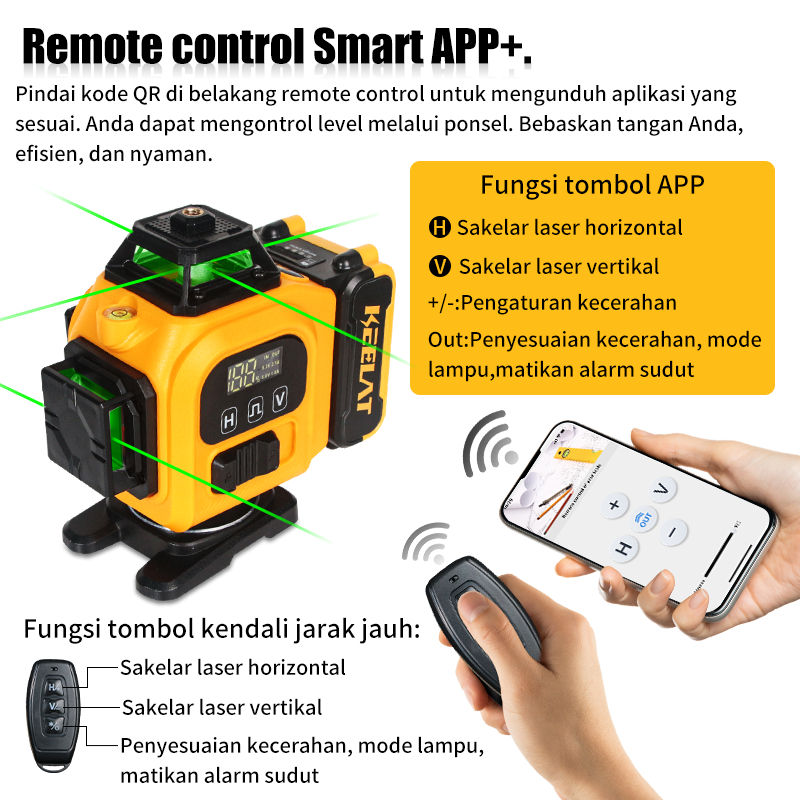 KEELAT KLL004 16 Line Level Laser 4D Otomatis 360° dengan Basis Bisa Diputar Baterai 3600mAh el terbaru tahun 2025