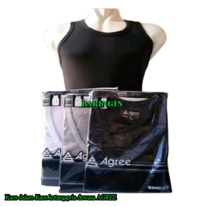 3 LEMBAR KAOS DALAM PRIA DEWASA-AGREE SINGLET COWOK POLOS KATUN KEREN HITAM OBLONG DISTRO - HITAM - ABU- PUTIH, M