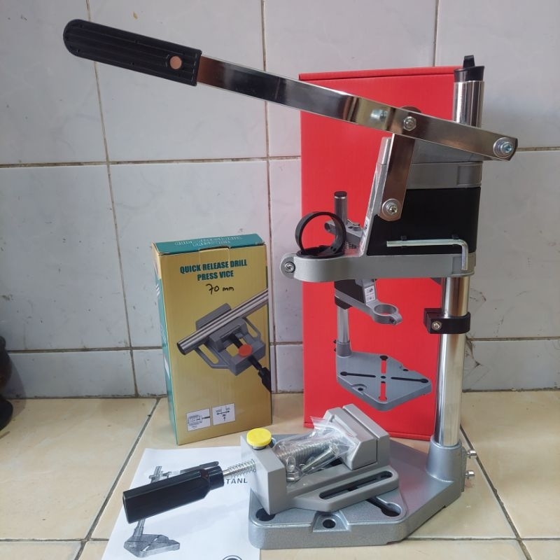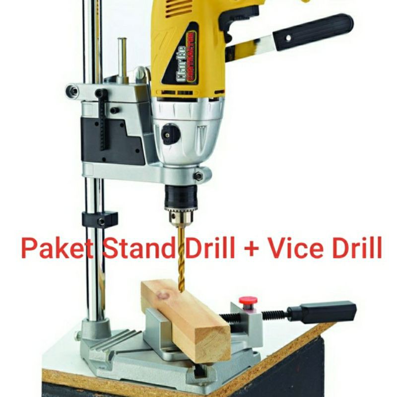 Paket Stand Drill Mesin Bor Tangan Alumunium Base + Vice Drill Press / Ragum