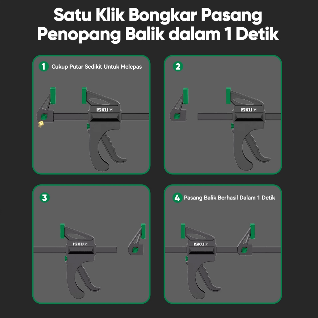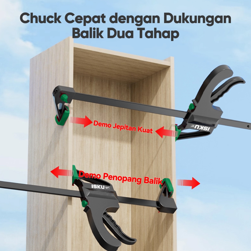 ISKU Clamp Kayu F-Clamp Cepat, Penjepit Kayu Dua Arah Super Kuat untuk DIY dan Pertukangan