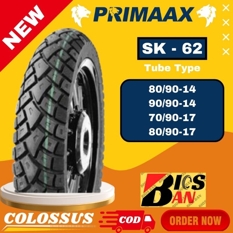 BAN PRIMAAX SK-62 RING 14 17 TUBETYPE/NON TUBELESS/SEMI TRAIL BEBEK HEREX MURAH