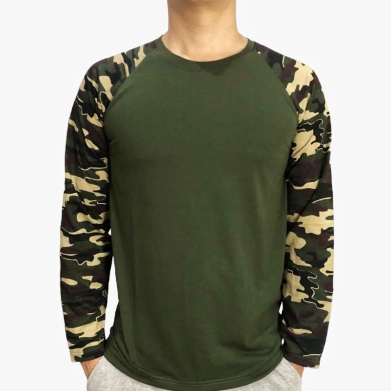 Kaos Raglan Hijau Army lengan Loreng 3/4 dan panjang size M L XL XXL