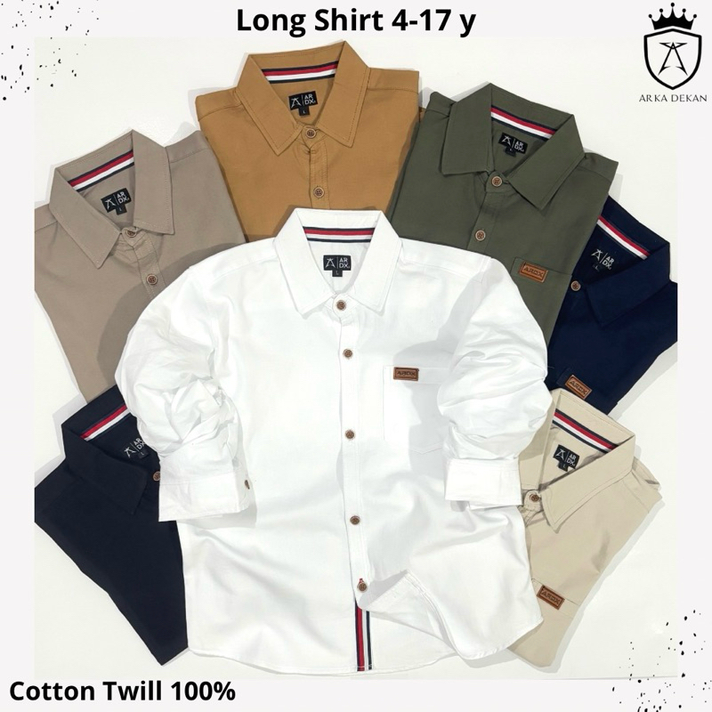 Arkadekan||Kemeja Shirt Polos Anak Laki Laki Lengan Panjang Usia 4-17 Tahun