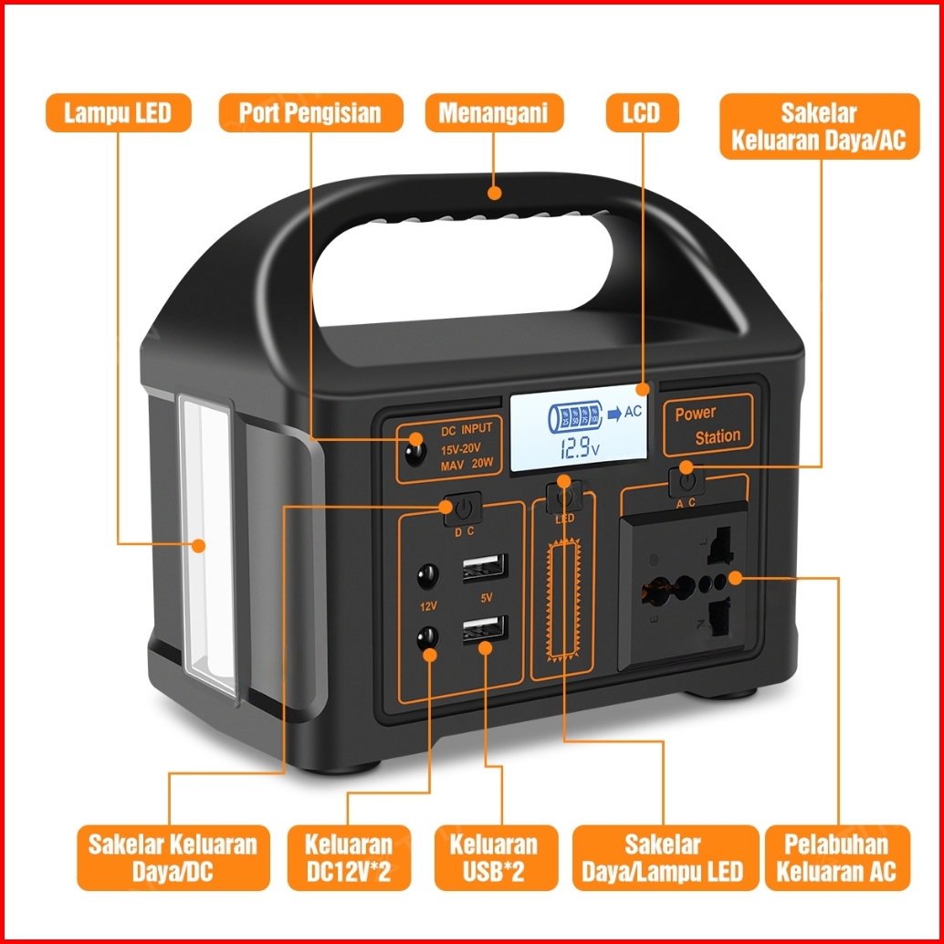 Power Supply Station Solar Generator Ac Dc Usb Type-c 100w 220v 40800mah - E200 Pembangkit Listrik Tenaga Surya Portabel