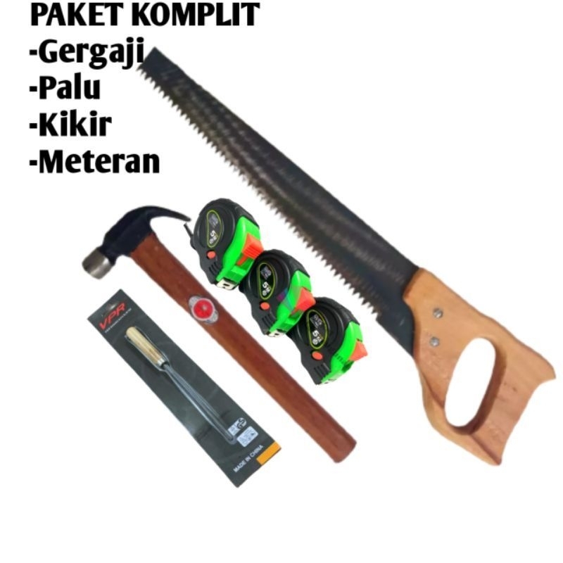 Paket Tukang -Gergaji kayu baja asli siap pakai-palu kambing -linggis mini-meteran viper