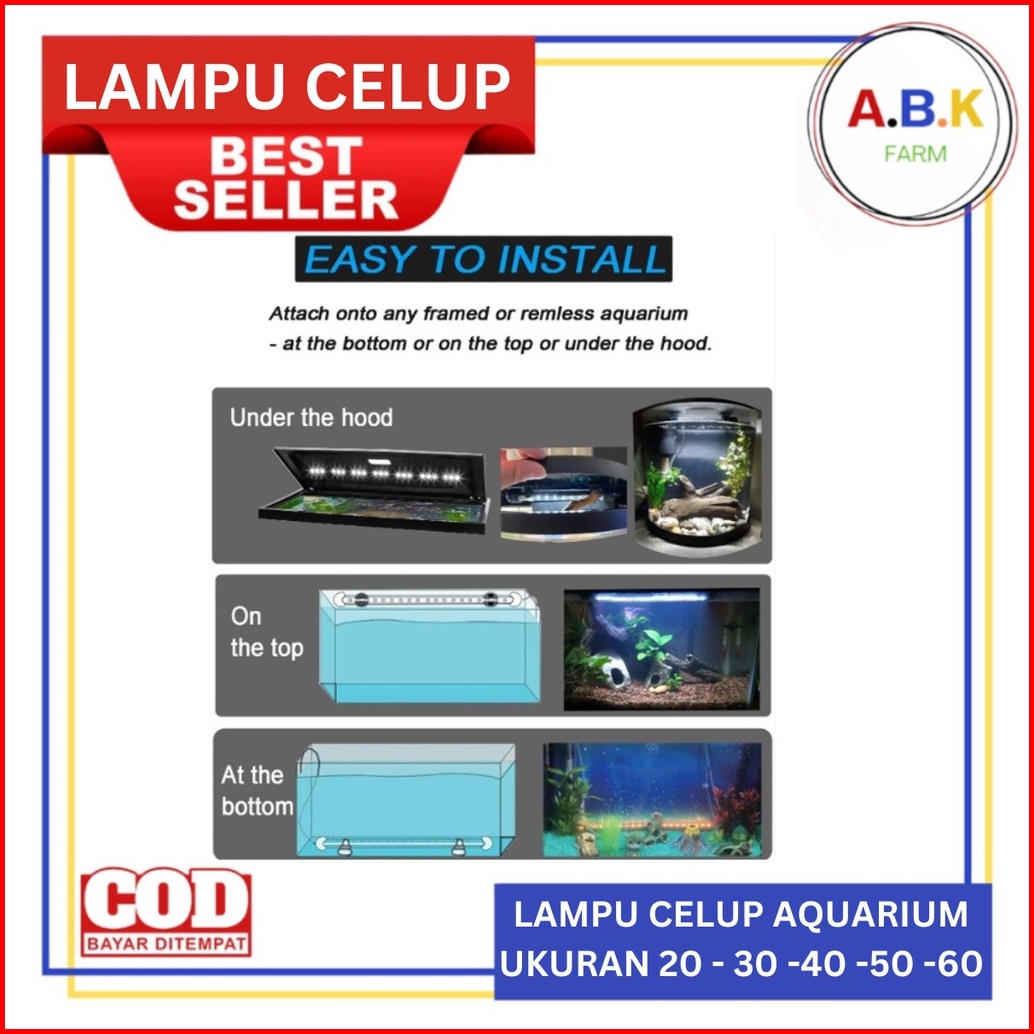 Lampu Led Celup Aquarium Aquascape Akuarium Ukuran 20 30 40 50 60 3 Warna