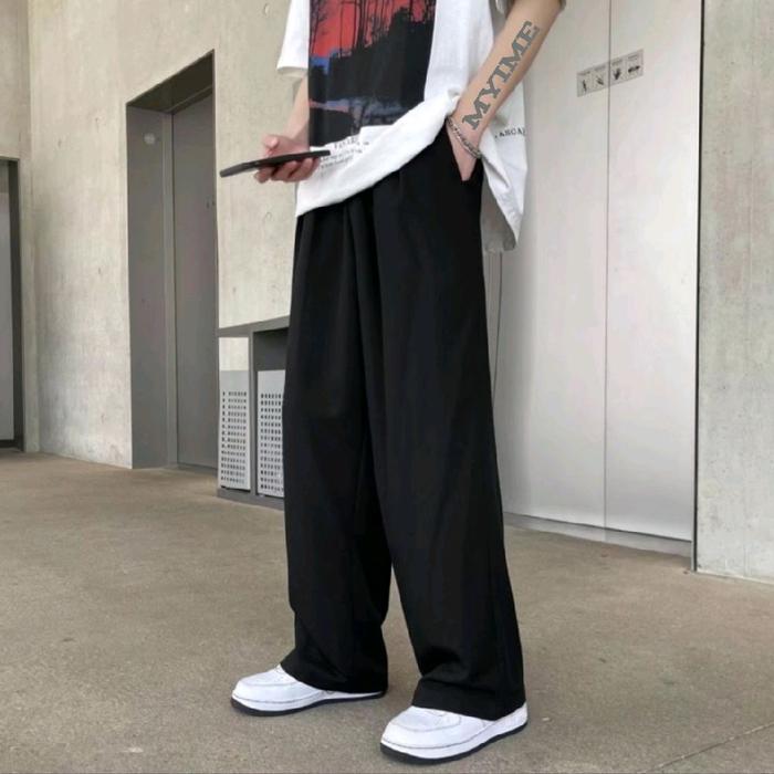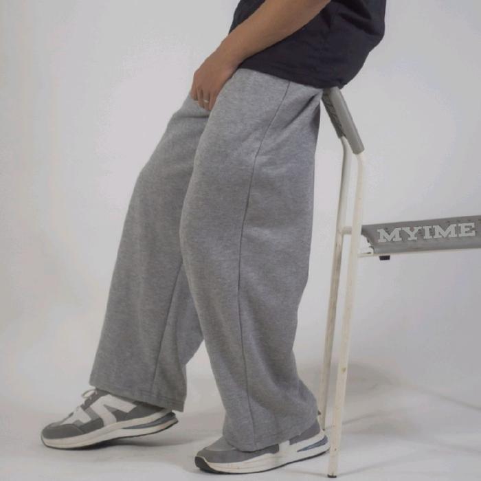 Celana Panjang Baggy Pants Kalcer Unisex || Street Wear Korean Style || Celana Gombrong Keren || Pria Wanita - Abu Muda,