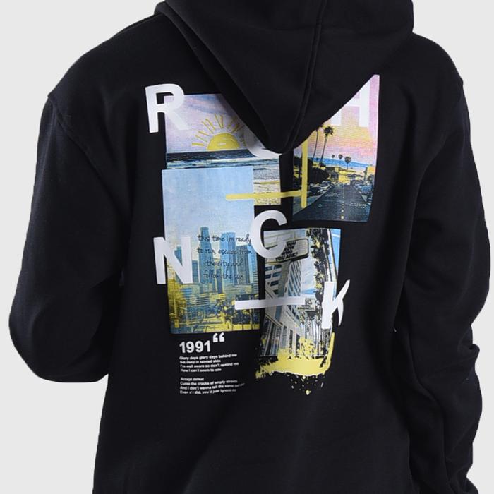 ROUGHNECK H571 BLACK SUMMER VACATION HOODIE COWOK FLEECE NYAMAN PANJANG SABLON - M, BLACK