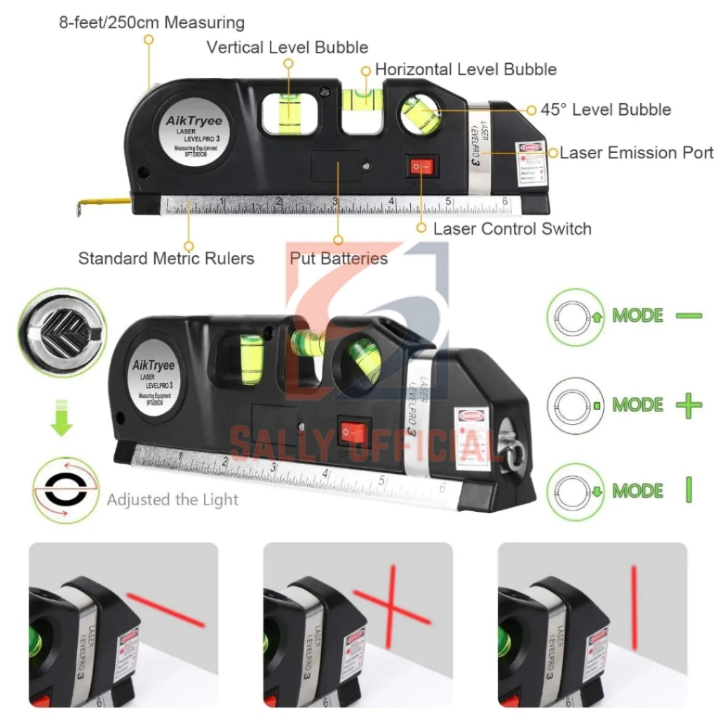 fixit Meteran Laser 250 Cm penggaris Fixit Level Pro 3 Penggaris Laser Waterpass multifungsi