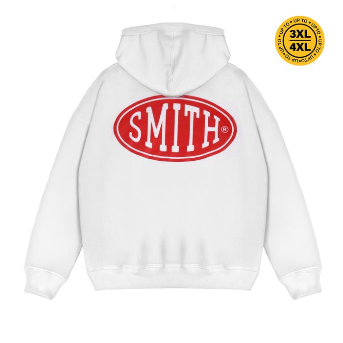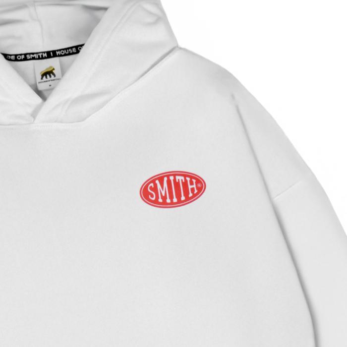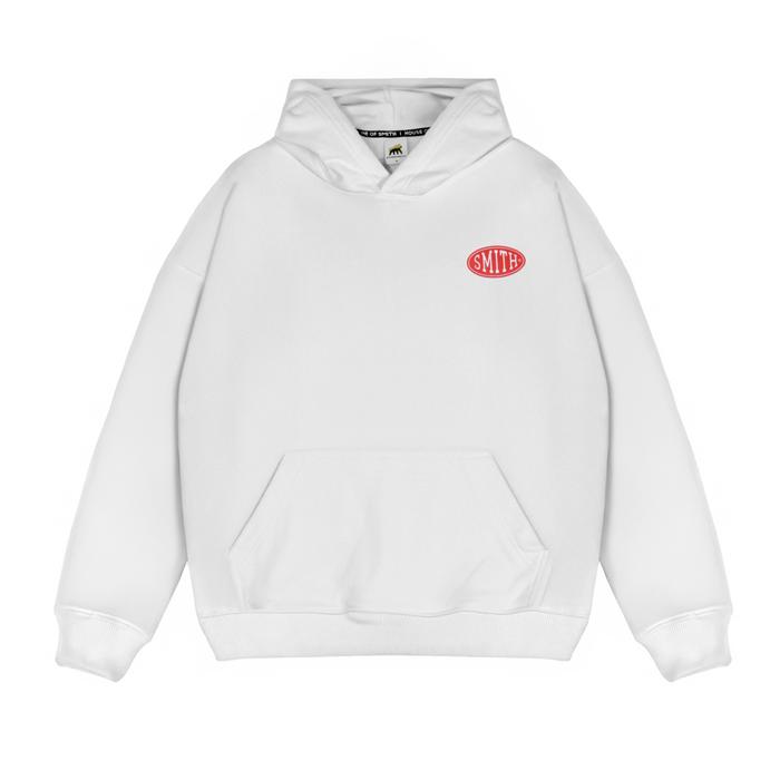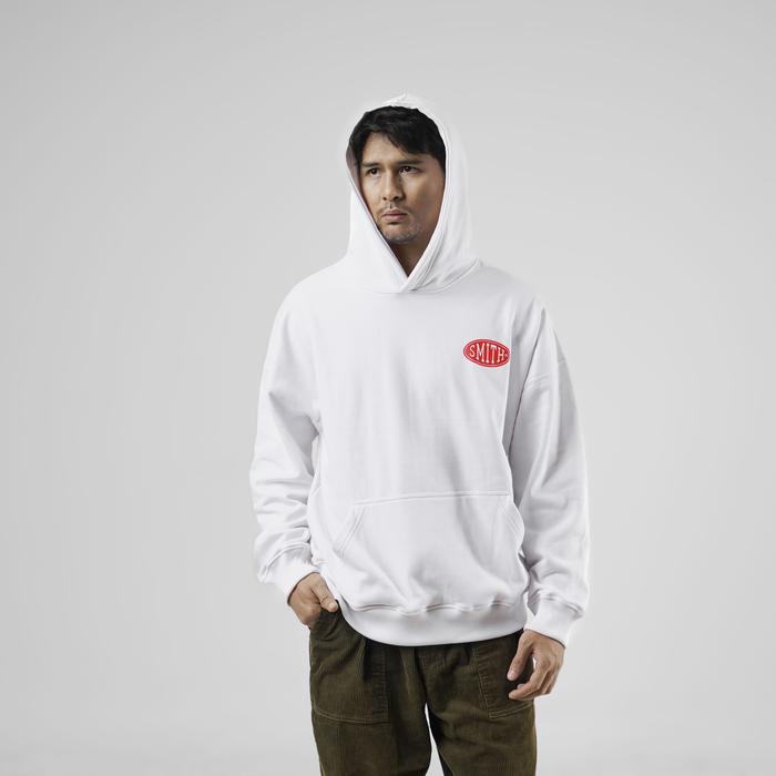 HOUSE OF SMITH BADGE LOGO OVERSIZED HOODIE WHITE - SWEATER HOODIE OVERSIZE PRIA - M