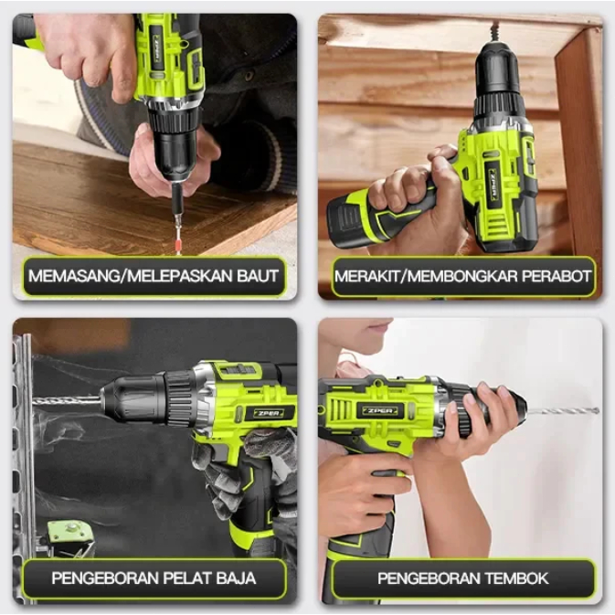 ZPER 108PCS Tool Box Besar Mesin Bor Baterai Toolkit Set Alat Tukang Bangunan Lengkap Kotak Perkakas