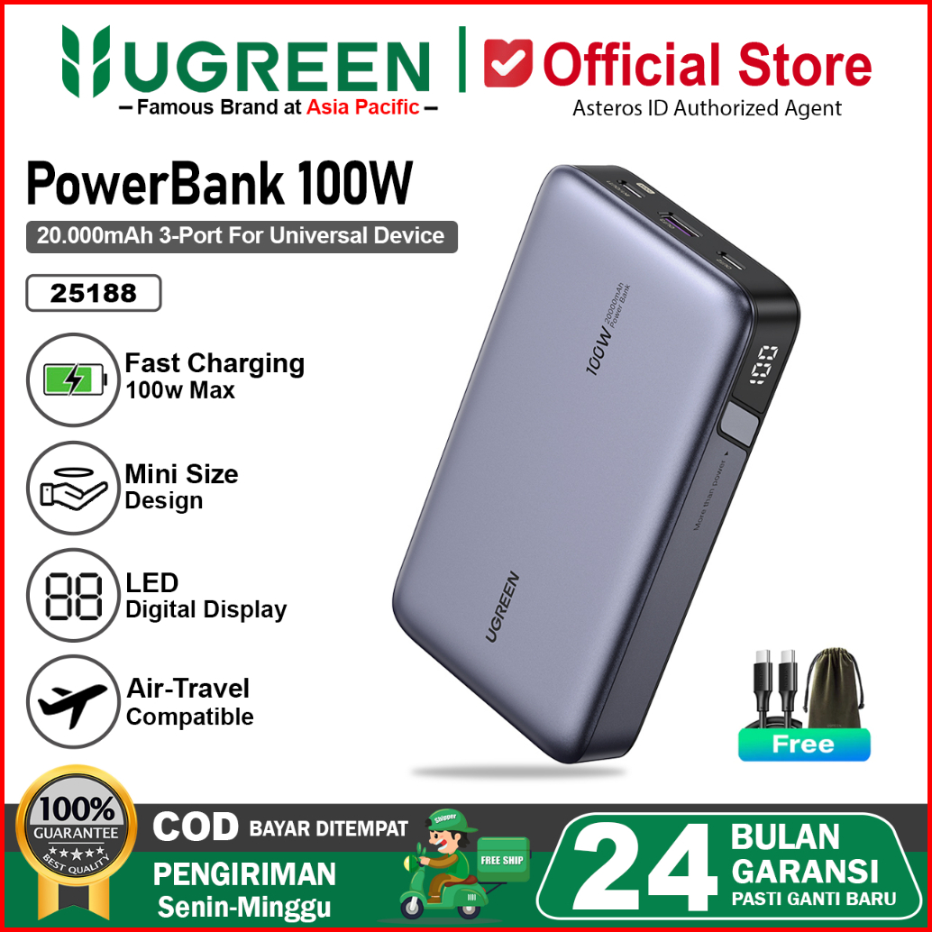 Ugreen Power Bank Gan Nexode Robot 12000mah-25000mah Pd Fast Charging 200w For Laptop Macbook Notebook Ipad Handphone