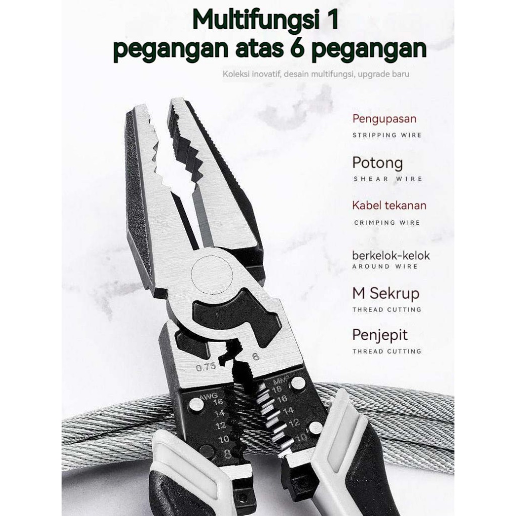 Tang Pliers Multifungsi 9 Inci 6-in-1 Harga Terbaik - Tempa Chrome Vanadium/Pengupas & Crimping Kawat/Pemotong Kabel/Perkakas Listrik & Perbaikan