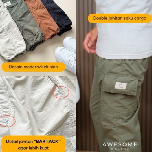 Awesomekids 2-10Th Jogger Parasut Celana Cargo Dakota Active Anak Laki Perempuan Training Pants