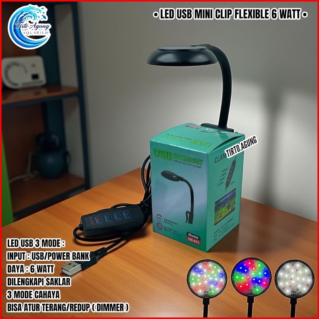 Lampu Jepit 3mode Warna Hitam Putih Led Aquarium Aquascape Mini Tabung Silinder Kura-kura Mini Clip