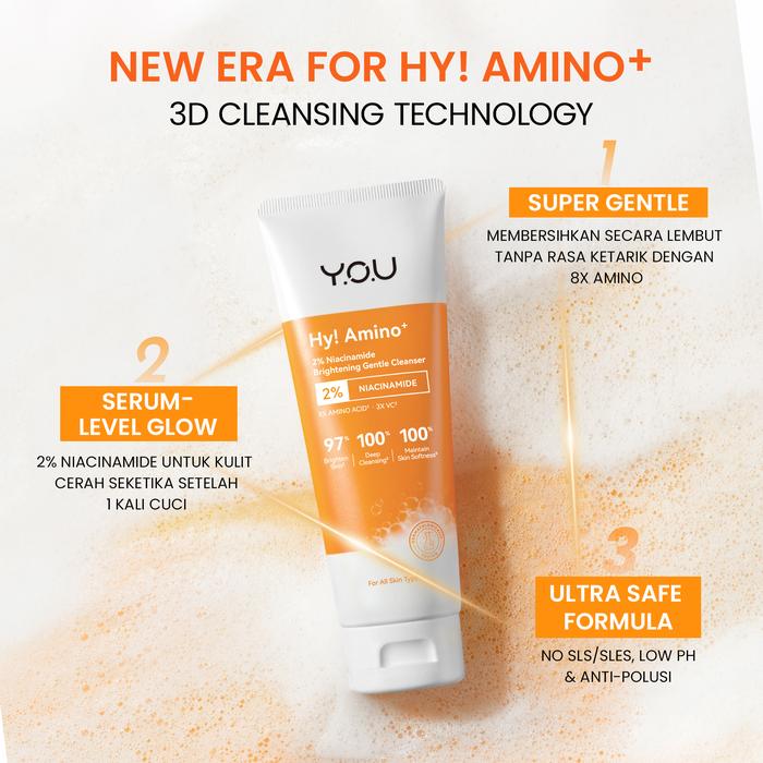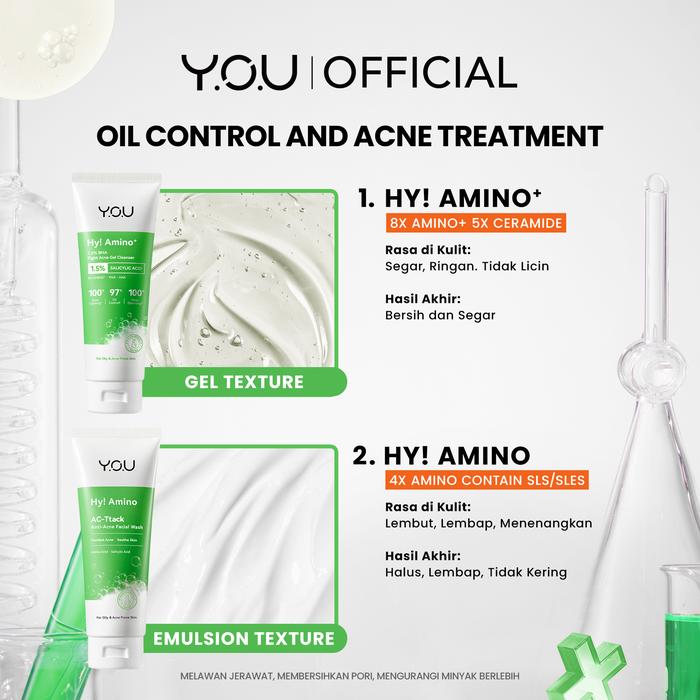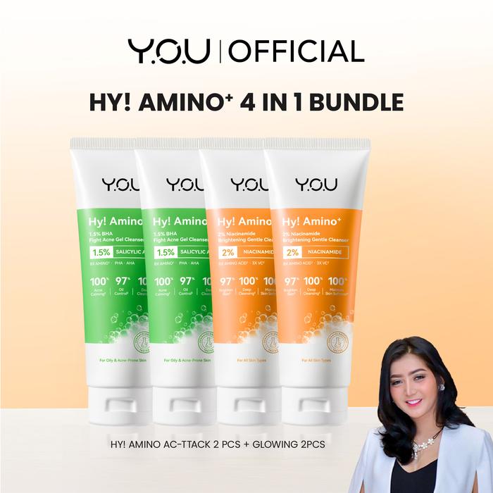 [BUNDLE EXCLUSIVE] YOU HY AMINO+ FACIAL WASH 4PCS BUNDLE ACNE & BRIGHTENING FACE WASH MENCERAHKAN SABUN CUCI MUKA ACID