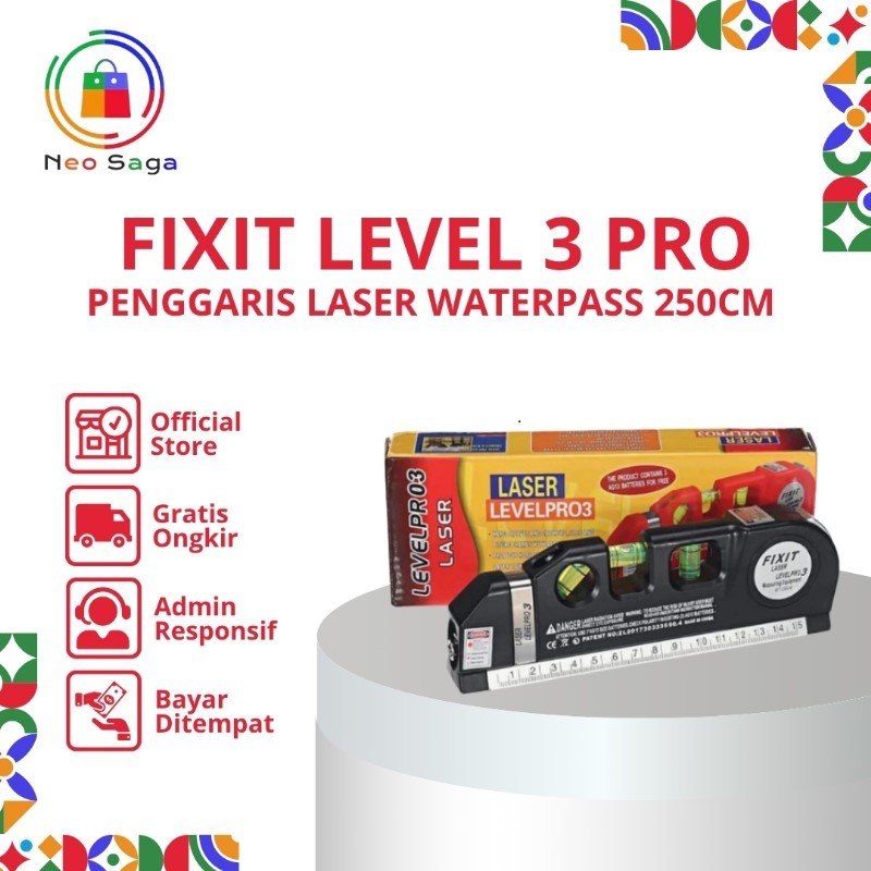 Fixit/fixta Level Pro3 Laser Waterpass+Meteran Laser2.5m/Penggaris Kombinasi Laser Waterpass Meteran