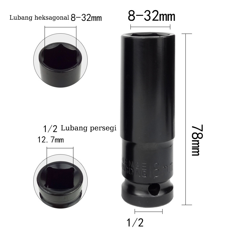 Usefultools Kunci Socket Extention Impact 10pcs 1/2" 8-24mm Kunci Mata Shock Impact Alat Panjang Mencapai Soket Nut