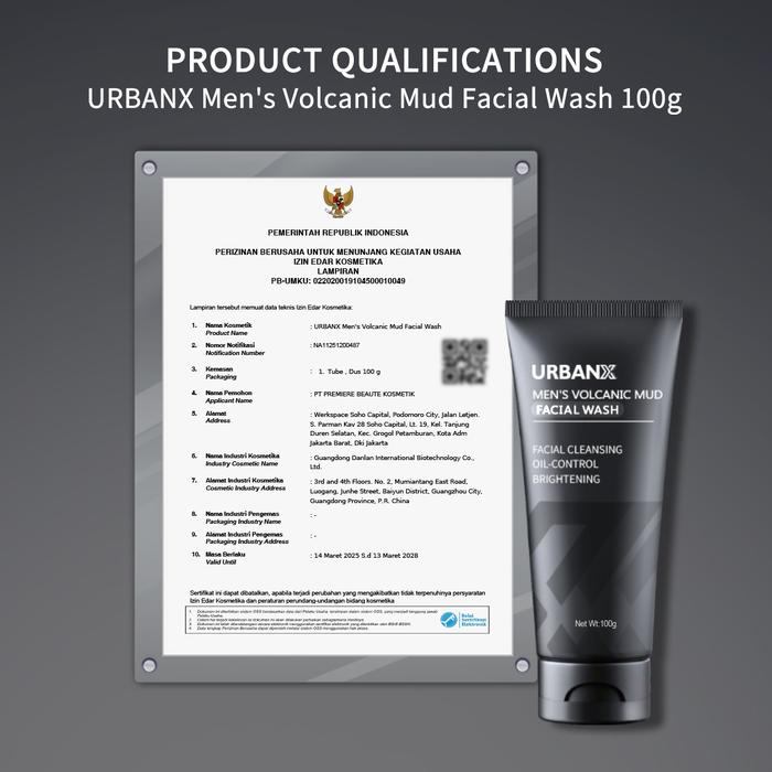 URBANX MEN'S VOLCANIC MUD FACIAL WASH 100G FACIAL-CLEANSING OIL-CONTROL BRIGHTENING FACE WASH - 1 PCS