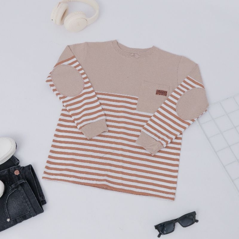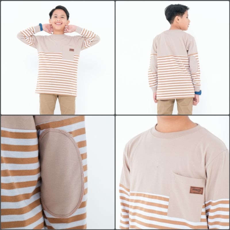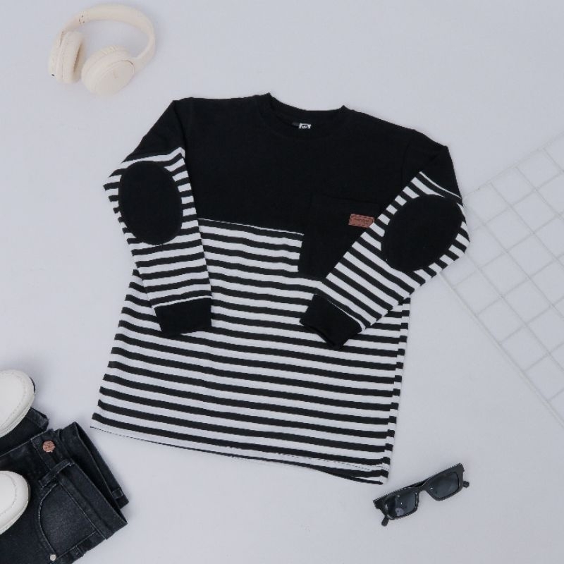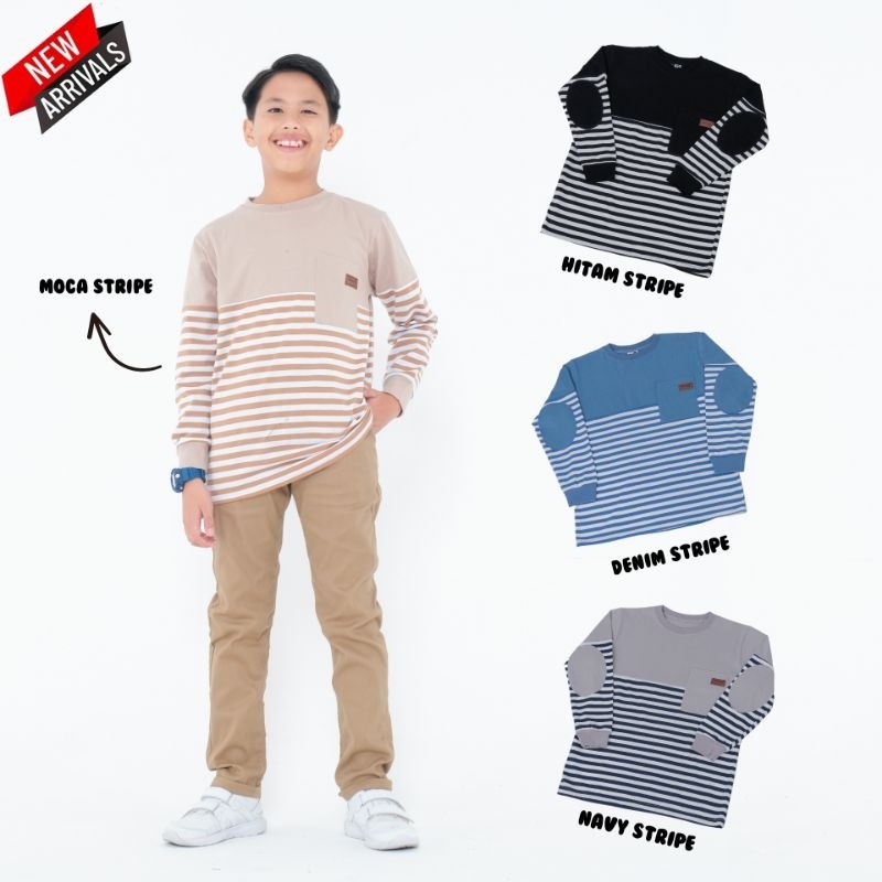 Baju Kaos Anak Laki-Laki Lengan Panjang Atasan Blouse Distro Stripe Terbaru Usia 4 - 14 Tahun